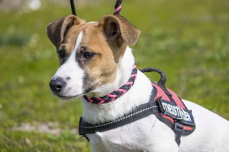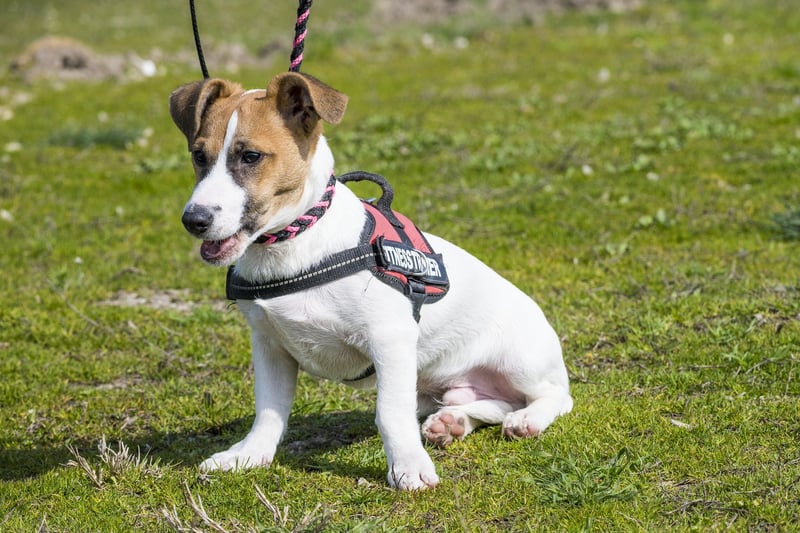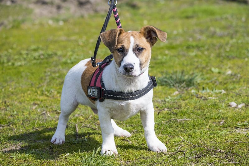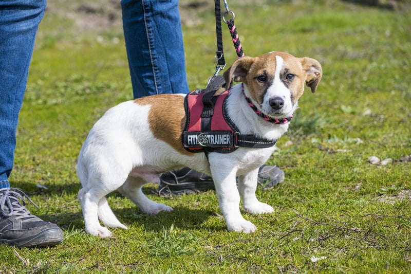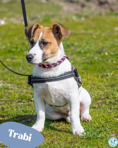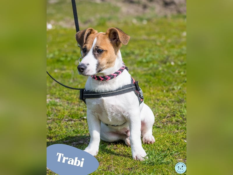 Dieser junge Rüde kommt von der Straße und bringt vermutlich etwas Jack-Russell-/Foxterrier-Gene mit. Trabi ist super lieb, bleibt klein, ist aktiv und spielt sehr gerne im Rudel.
