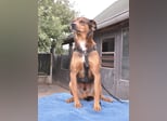 Amon ist ein Bub, er ist laut Tierarztschätzung ca. 4 Jahre alt (geb. 08.07.2021), wiegt 13,5 kg und ist 45 cm groß. Vermutet wird Bracke-Jack Russel Mix.