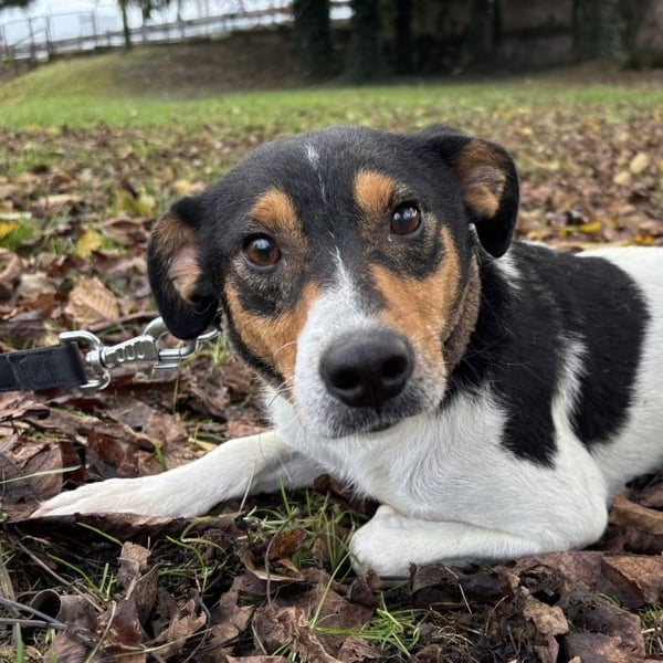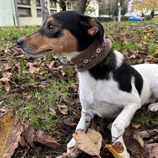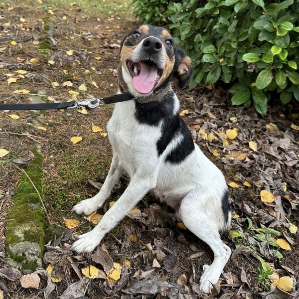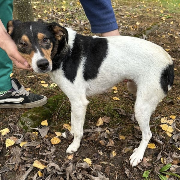 Mali ist ein Mädchen, laut Tierarztschätzung ca. 2 Jahre alt (geb. 26.09.2023), etwa 12 kg schwer und 45 cm groß. Vermutet wird ein Jack-Russell-Terrier-Mischling. Sie hat eine kurze Rute – ob sie so geboren wurde oder man ihr diese amputierte, wissen wir leider nicht.