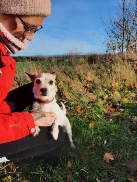 Sie ist sehr menschenbezogen, extrem verschmust und kuschelbedürftig, gleichzeitig aber auch ein echter Dickschädel, der seinen eigenen Kopf hat – typisch Jack Russell eben. Sie ist loyal, lernfähig und begleitet ihre Menschen gern überallhin – sogar auf dem Paddelboot macht sie eine super Figur!