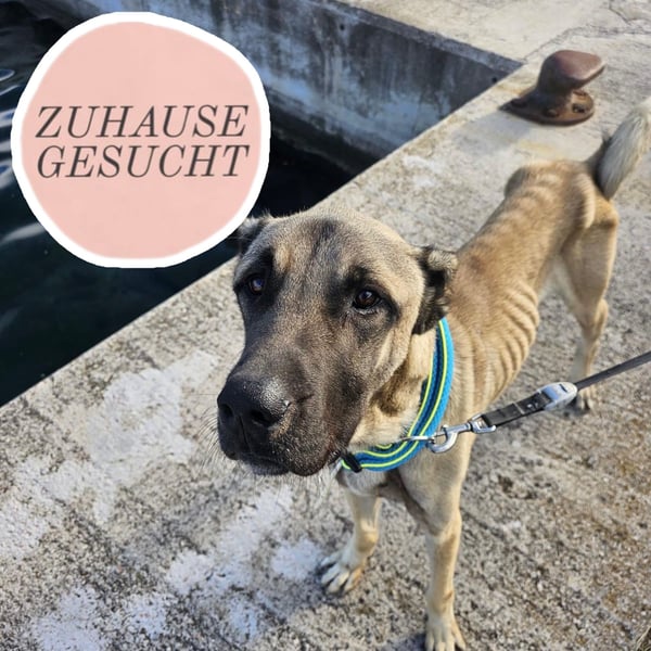Das ist Cognac, ein großer Kangal-Mischlingsrüde mit einem sanften Wesen und einem freundlichen Herzen. Cognac ist ein sehr menschenbezogener, lieber Hund, der die Nähe zu Menschen sichtbar genießt und sich nichts sehnlicher wünscht, als endlich das Tierheim hinter sich zu lassen.