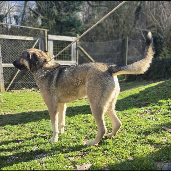 Sardor ist ein Bub, laut Tierarztschätzung ca. 3,5 Jahre alt (geb. 10.06.2022), über 70cm groß und etwa 40kg schwer. Falls genaue Angaben relevant sind, lassen wir ihn bei einer ernsthaften Anfrage selbstverständlich exakt messen und wiegen. Optisch sieht er aus wie ein Kangal-Schäferhund Mischling.