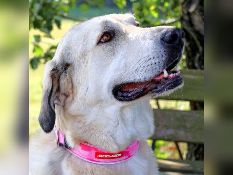 Unsere Zimtschnecke hat ihren Namen, weil ihr Schwanz gekringelt ist wie das süße Gebäck. Sie ist ein großes Mädchen mit einem hübschen Lächeln. Zimtschnecke wurde von Ihrer jetzigen Besitzerin im Ausland von der Straße gerettet und lebt seitdem bei ihr. Leider kann sie dort nicht bleiben, was von vorneherein klar war. Zimtschnecke hat in der Vergangenheit viel gelernt, beherrscht viele Grundkommandos und liebt alle Menschen. Sie ist aufgeschlossen und lernt gerne neue Dinge. Ihre Hobbys sind laaange Spaziergänge und mit ihren Menschen spielen. Das Alleinebleiben kann noch etwas geübt werden. Größere Kinder ab dem Teenie-Alter dürfen gerne in der neuen Familie von Zimtschnecke leben, Katzen mag sie aber gar nicht. Zimtschnecke wünscht sich Menschen, die sie sehr liebevoll und sehr konsequent durch das Leben begleiten, sich viel mit ihr beschäftigen und mit ihr Abenteuer erleben möchten. Sie suchen eine wirklich große Freundin? Dann rufen Sie für unsere Zimtschnecke an!