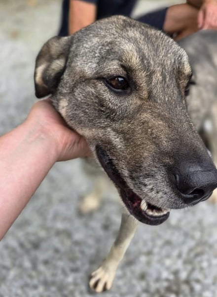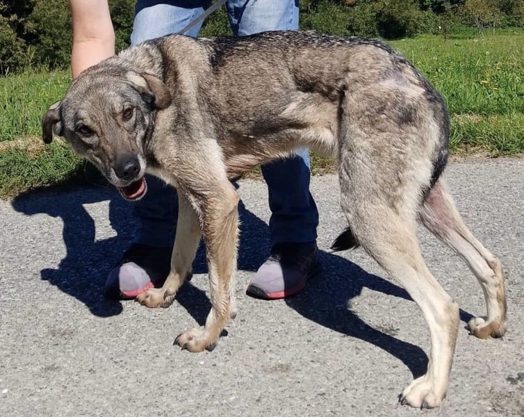 Matty ist ein Bub, laut Tierarztschätzung ca. 4,5 Jahre alt (geb. 02.04.2021), etwa 64 cm groß und 30 kg schwer (noch viel zu dünn). Vermutet wird ein Kangal-Šarplaninac Mischling.
