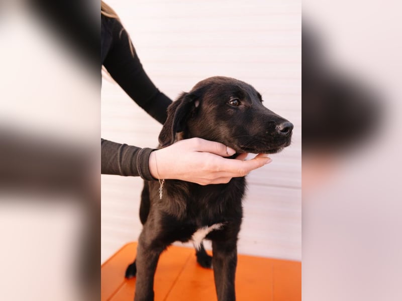Mit seinem schwarzen, glänzenden Fell, dem süßen weißen Brustfleck und seinem sanften Blick ist Peanut ein echter Hingucker. Er beobachtet aufmerksam seine Umgebung, schaut neugierig in die Welt und tastet sich Schritt für Schritt an neue Situationen heran.