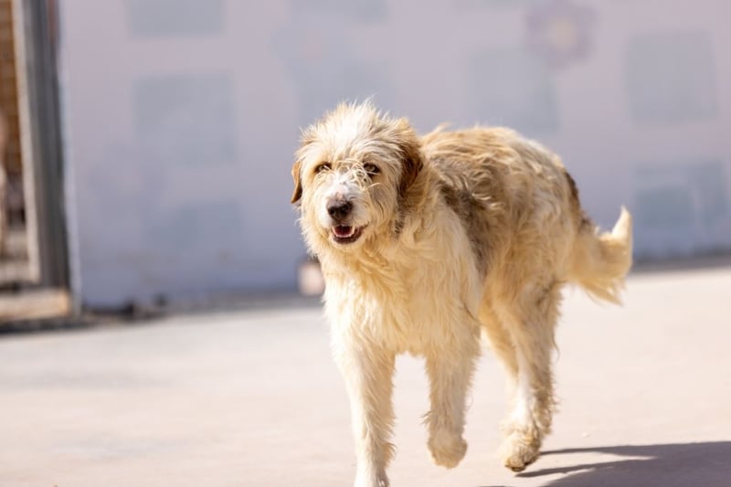 Koko ist ein etwas schüchterner Hund, der noch mehr Selbstvertrauen bekommen muss. Es wird mit ihm gearbeitet. Er ist jetzt schon mit der Hundegruppe draußen und das klappt gut.