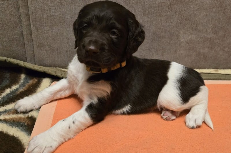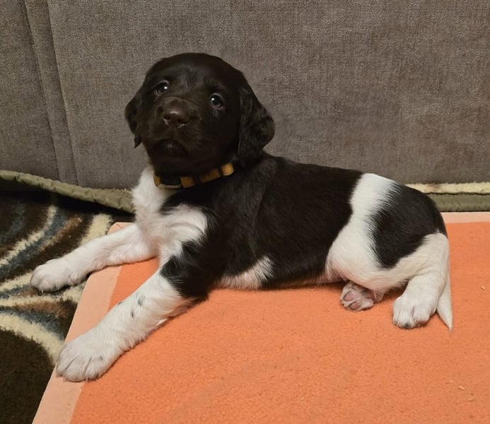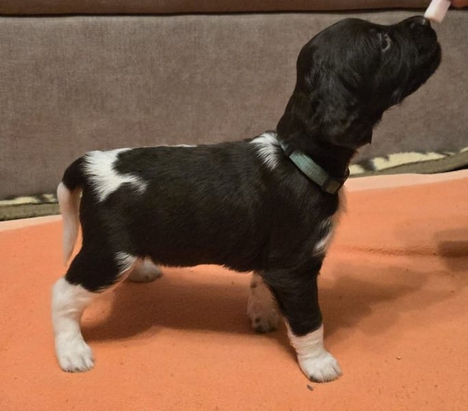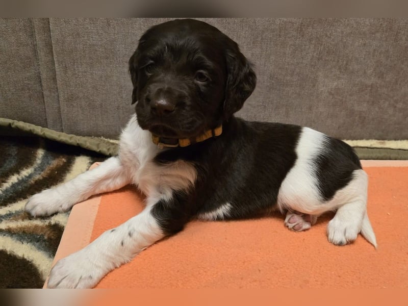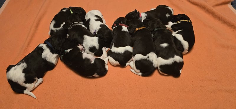 Unsere kleine Münsterländerin Fleka hat am 23.01.2026 zehn Welpen zur Welt gebracht: zwei Rüden und acht Hündinnen.