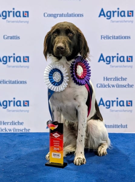 Beide Elterntiere sind HD-frei, genetisch untersucht und weisen einen niedrigen Inzuchtkoeffizienten auf. Außerdem haben beide Hunde VJP, HZP und VGP Prüfungen sehr gut absolviert.
