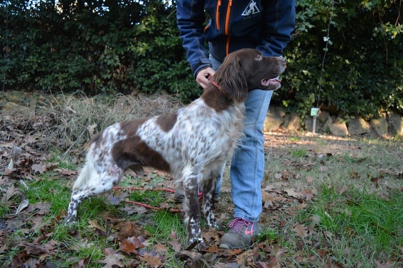 Mottle bringt typisches Jagdhundeverhalten mit in sein neues Zuhause. Wahrscheinlich hat er einem Jäger als Arbeitshund gedient und durfte seinen Käfig nur verlassen, wenn es zur Jagd ging.
