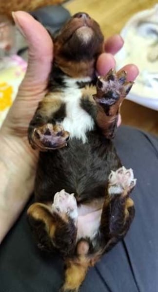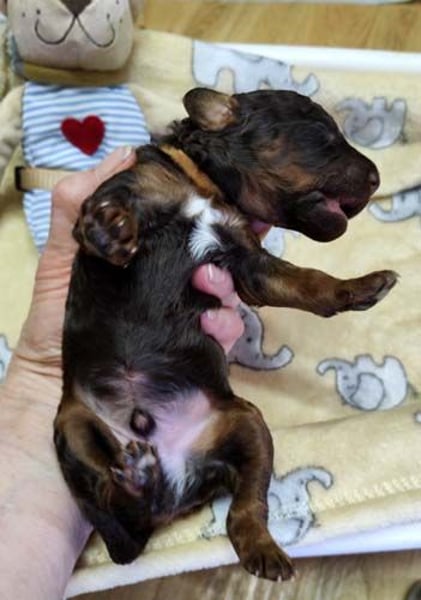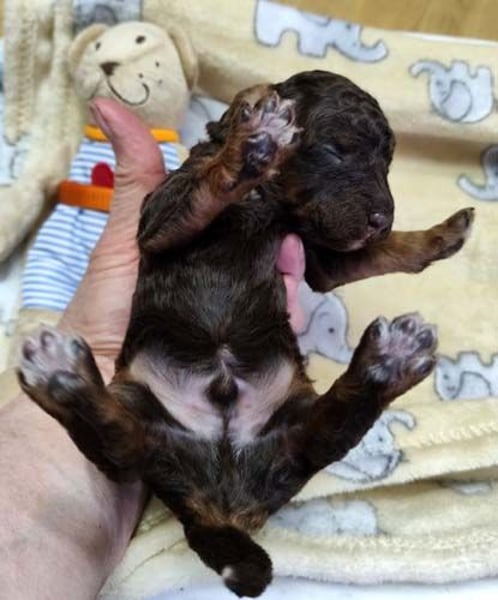 Am 23.10.2025 war es soweit - unsere erste Verpaarung in braun/loh im VDH/FCI - wurde geboren. Es sind 4 gesunde Rüden/2 Hündinnen geboren. Eine kleine Besonderheit gibt es bei diesem Wurf - der Vater ist Träger des Scheckgen´s - welches er teilweise an die Welpen weiter gegeben hat - und somit auch mit entsprechenden Hündinnen braun/weiß gescheckte Welpen kommen können.