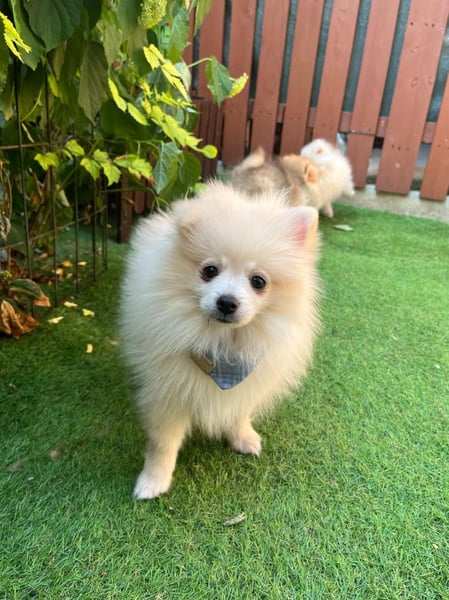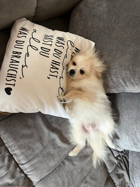 An der Leine läuft er schon gut und zeigt sich in bekannten Situationen abrufbar. Stubenreinheit und das kleine Hunde-Einmaleins müssen allerdings noch gemeinsam erarbeitet werden.