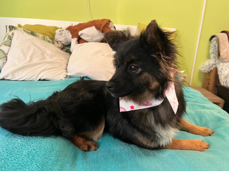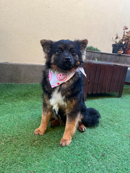 Sie ist eine sehr freundliche, aufgeschlossene und neugierige Hündin, die mit ihrer verspielten Art sofort gute Laune verbreitet. Mit anderen Hunden versteht sie sich hervorragend und liebt es, mit ihnen zu spielen.