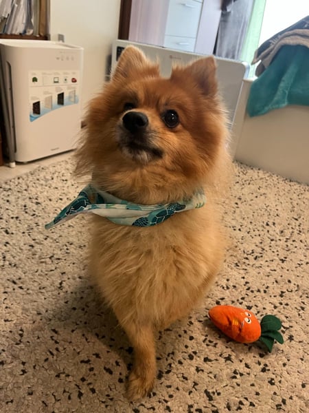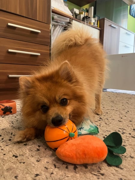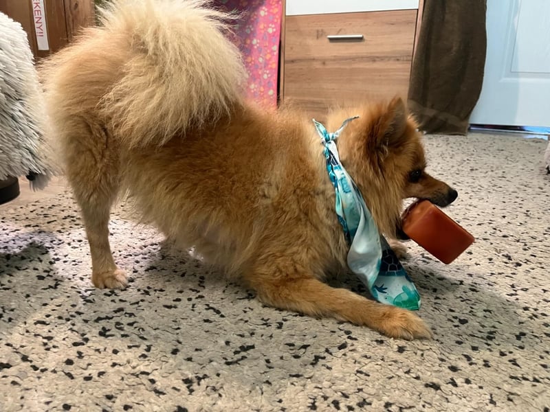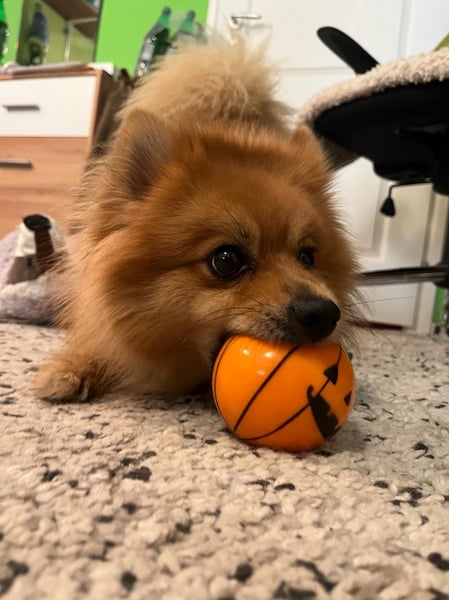 Er ist freundlich, verspielt, neugierig und hört gut. Mit anderen Hunden versteht er sich prima. Besonders süß: Er sammelt sein Spielzeug und passt darauf auf.