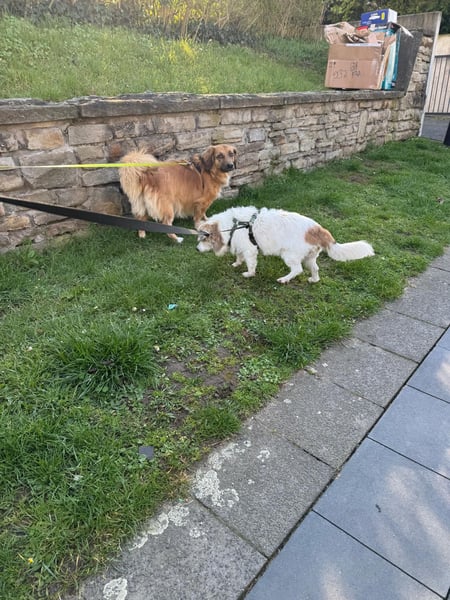 Kyon ist verträglich mit anderen Fellnasen und zeigt sich hier interessiert. Mit dem Hund auf der aktuellen Pflegestelle versteht er sich sehr gut und zeigt hier, dass er trotz seines Alters noch viel Spaß am Leben hat!