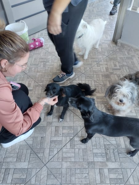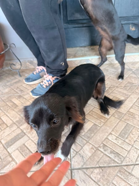 Zunächst lebten sie kurz im Haushalt von ihrer Finderin und zeigten sich dort als aufgeschlossene und freundliche Junghunde.