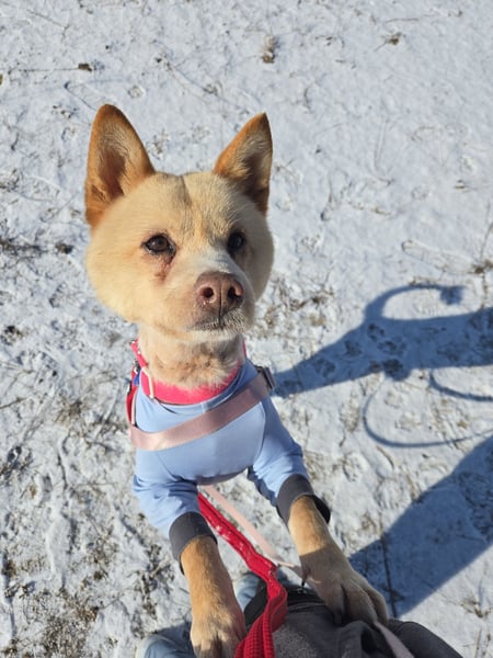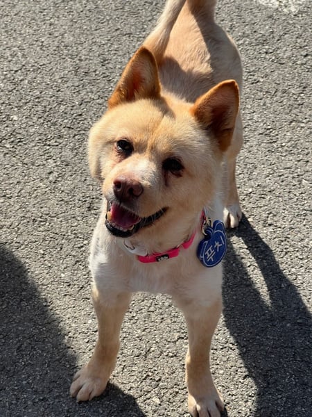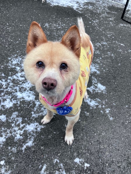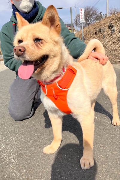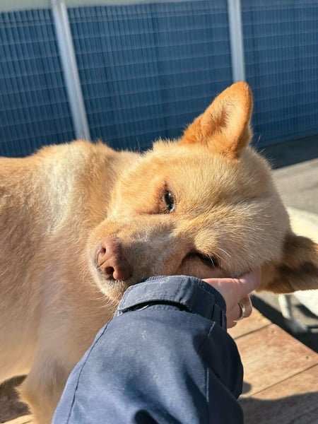 Puchi hat eine Vergangenheit, die kaum zu ertragen ist. Im August 2025, während einer extremen Hitzewelle, erhielt das Team von WEACT einen dringenden Notruf. Zwei Hunde waren draußen an kurzen Metallketten angebunden und der sengenden Hitze schutzlos ausgeliefert. Einer der beiden war in einem lebensbedrohlichen Zustand – sein Körper war geschwollen, er konnte sein eigenes Gewicht nicht mehr tragen und wurde von Maden befallen. Puchi konnte nur hilflos zusehen, wie sein Freund litt. Die Retter kamen rechtzeitig, um beide Hunde zu sichern, doch für seinen Gefährten kam jede Hilfe zu spät. In seinen letzten Momenten schien es, als würde er Puchi in die Obhut der Retter geben. Heute blickt Puchi mit vertrauensvollen Augen in die Zukunft und wartet auf Menschen, die ihn so lieben, wie er ist.