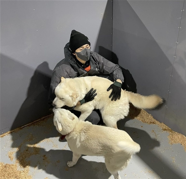 Während des Umzugs zum neuen Tierheimstandort in Yongin-Korea hatten Laia und Jake die Ehre, von einem bekannten koreanischen Schauspieler, Kiwoo Lee, geknuddelt zu werden, der an einem Wochenende gekommen war, um im neuen Tierheim zu helfen!