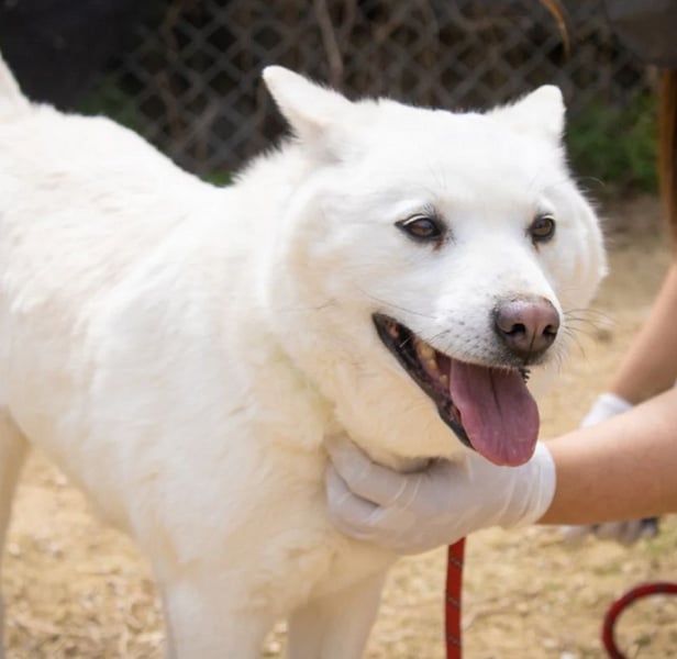 Paprika, eine junge Jindo-Mischlingshündin, kam Ende Oktober 2021 in unser Tierheim – gemeinsam mit ihren sechs bezaubernden Babys. Ihre Geschichte ist ebenso traurig wie bewegend: Sie wurde in der Nähe unseres Tierheims angebunden an einem Pfahl gefunden, ihre Welpen eng bei ihr in einem Pappkarton. Es war erschütternd, sie in diesem Zustand zu entdecken.