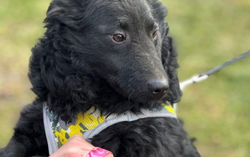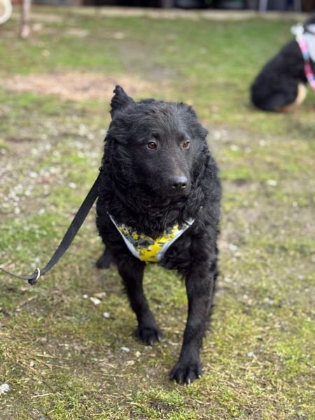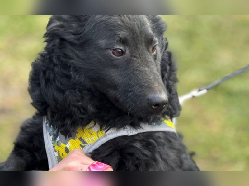Ihr wunderschönes, leicht gelocktes schwarzes Fell umrahmt ein feines Gesicht mit weichen, warmen Augen. Dieser Blick ist es, der berührt. Ein bisschen sehnsüchtig. Ein bisschen vorsichtig. Und gleichzeitig voller Hoffnung.