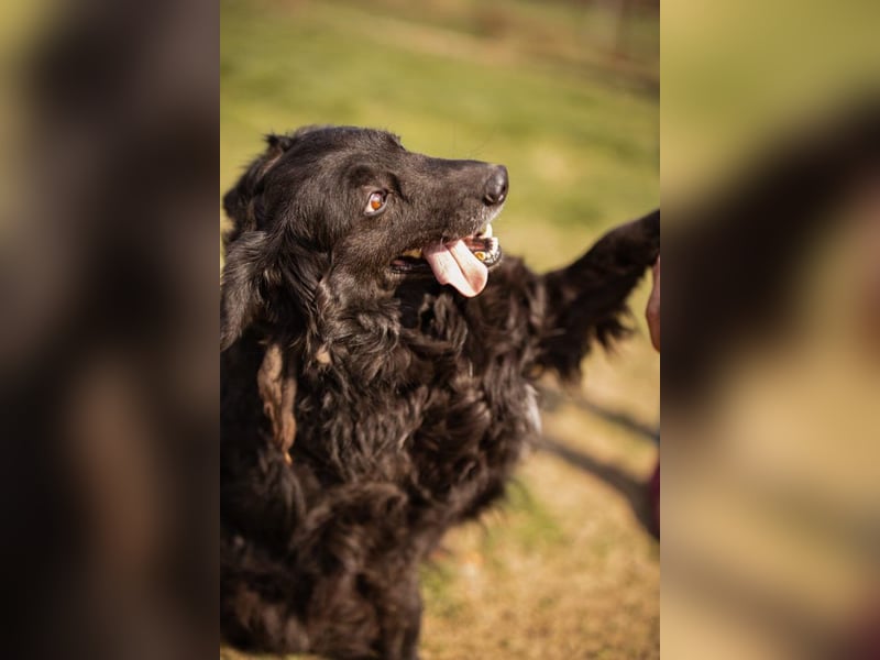Norman ist vom Typ her ein kroatischer Schäferhund-Mix, mit diesem schönen, leicht gewellten schwarzen Fell und dem freundlichen, offenen Blick. Einer, der nicht viel Aufhebens um sich macht, aber trotzdem sofort angenehm auffällt.
