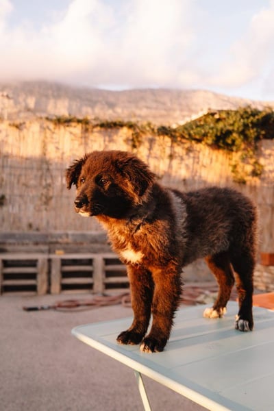 Auf ihren Bildern sieht man es sofort: Milena wirkt wie ein kleines, aufmerksames Naturkind, das immer bereit ist, die Welt von einem neuen Aussichtspunkt aus zu betrachten – im Zweifel sogar von einem Tisch. Ihr dunkles, wuscheliges Fell ist wie ein kleines Abenteuer für die Hände, und die hellen Abzeichen wirken, als hätte sie sich einmal kurz durch ein Farbtöpfchen Weiß geschnüffelt, bevor es losging.