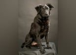 Nero ist ein Bub, laut Tierarztschätzung ca. 8 Monate alt (geb. 17.03.2025). Er wiegt etwa 14 kg, ist 45 cm groß und vermutlich ein Mudi-Kroatischer Schäferhund-Mix. Sein Schwänzchen ist kurz – wahrscheinlich wurde er so geboren.