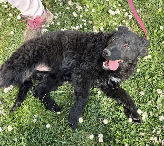 Anora ist ein Mädchen, sie ist laut Tierarztschätzung ca. 5 Monate alt (geb. 02.11.2025), wiegt 11,9kg und ist 39cm groß. Vermutet wird ein Kroatischer Schäferhund Mischling.