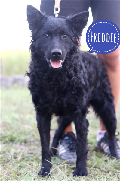 Freddie ist ca. 8 Monate alt (geb. 01.02.2024), wiegt 12,5kg und ist 46cm groß. Vermutet wird ein reinrassiger Kroatischer Schäferhund. Mit kurzer Rute geboren.
