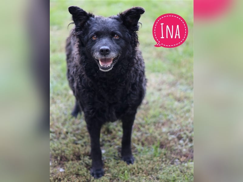 Ina ist ein Mädchen, ist ca. 6,5 Jahre alt (geb. 10.04.2018), sie wiegt 20kg und ist 50cm in der Schulterhöhe. Vermutet wird ein reinrassiger kroatischer Schäferhund. Typisch für die Rasse hat sie eine kurze Rute, trotzdem wedelt sie wie verrückt wenn sie sich freut.