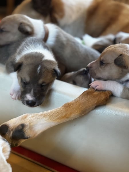 Am 13. Oktober schenkte unsere finnische Importhündin Ruusu 7 ( Deutscher, Polnischer und Internationaler Champion) 7 properen Hundekindern das Leben. Seitdem kümmert sie sich instinktsicher und liebevoll um die liebe Welpenschar. Vater ist der Therapiehund Xenos vom Palais Brinn. Die Welpen sind frei von allen testbaren Erkrankungen. Bei der Aufzucht geben wir uns, wie immer die größte Mühe, weil wir Wissen, wie prägend die ersten Lebenswochen für ein ganzes Hundeleben sein können. Wir freuen uns über eine rechtzeitige Kontaktaufnahme. Bei Fragen aller Art: gerne melden!