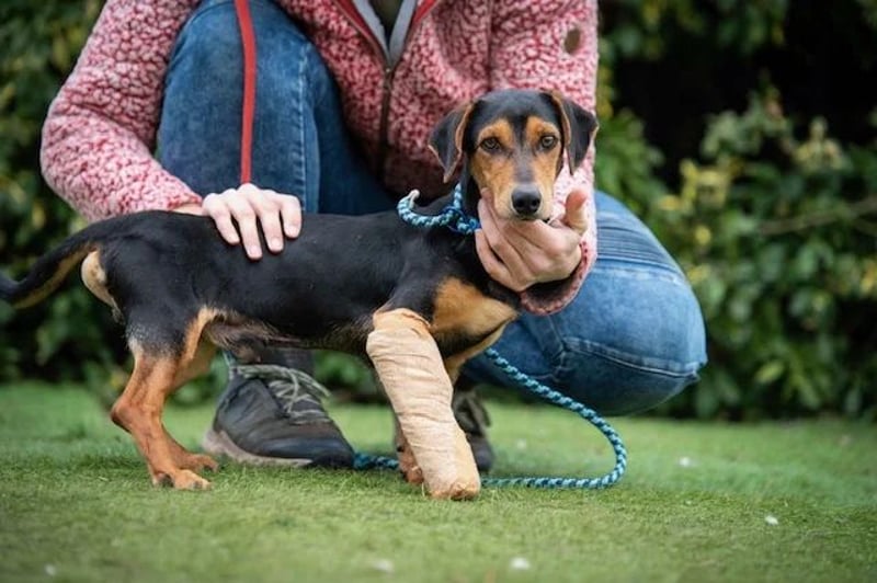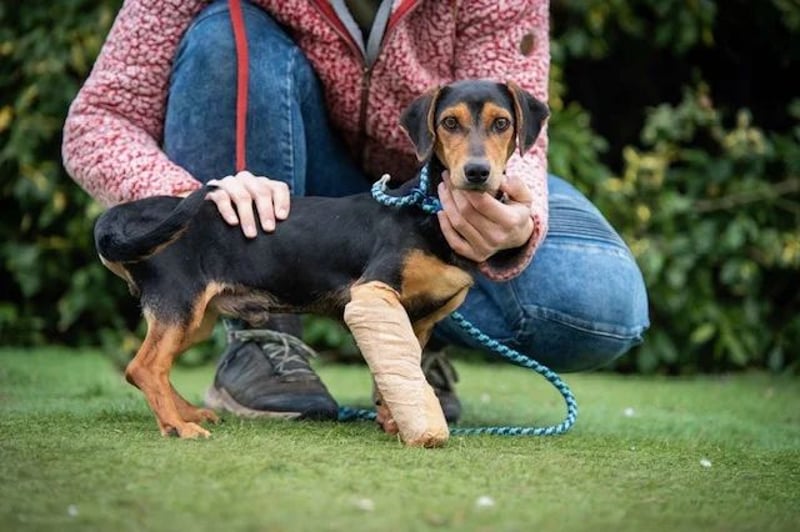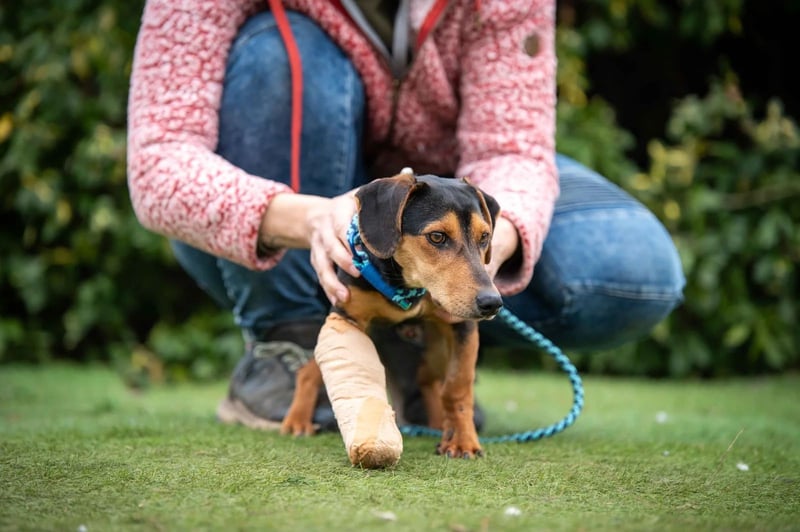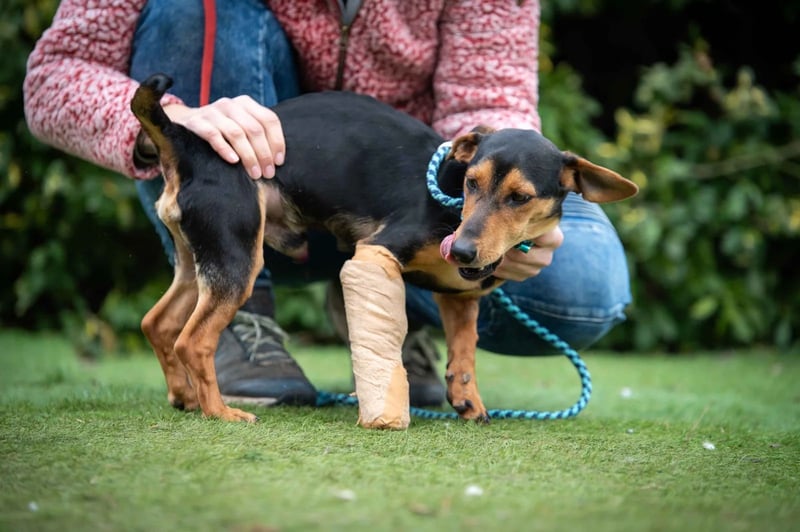 Vermutlich hatte er einen Autounfall oder seine Zehen wurden anderweitig schwer gequetscht – alle Zehen waren gebrochen. Das Bein wurde mit einer stabilen Bandage fixiert und eine Operation war glücklicherweise nicht notwendig. Über seine Vorgeschichte ist leider nichts weiter bekannt.