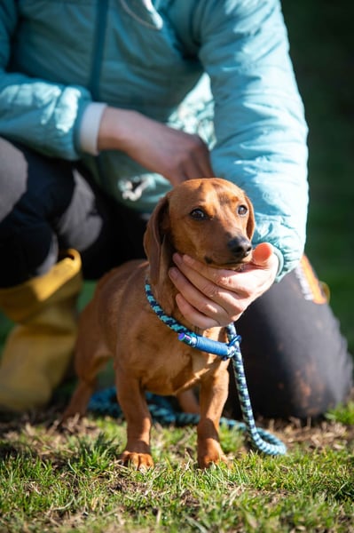 Aktuell zeigt sich Torello noch verunsichert und eingeschüchtert von all den neuen Eindrücken. Er ist lieb und freundlich, lässt sich anfassen und streicheln, doch richtig entspannen kann er dabei noch nicht. Da er noch nicht lange im Tierheim ist, geben wir ihm Zeit und sind sicher, dass er weiter auftauen wird. In einem passenden und liebevollen Zuhause wird er ganz bestimmt einen großen Schritt nach vorne machen. Und auch wenn er im Moment eher vorsichtig wirkt – in ihm steckt ein Dackel. Mit wachsendem Selbstvertrauen werden auch seine rassetypischen Eigenschaften zum Vorschein kommen: Charakter, Eigenständigkeit und der Wunsch, geistig sinnvoll beschäftigt zu werden. Das sollten seine zukünftigen Menschen von Anfang an im Blick behalten. Torello muss noch vieles lernen – von alltäglichen Routinen bis zum Hunde-ABC – und selbstverständlich möchte er später dackeltypisch gefördert werden. Mit anderen Hunden ist er verträglich und zeigt sich sozial.