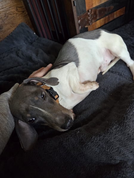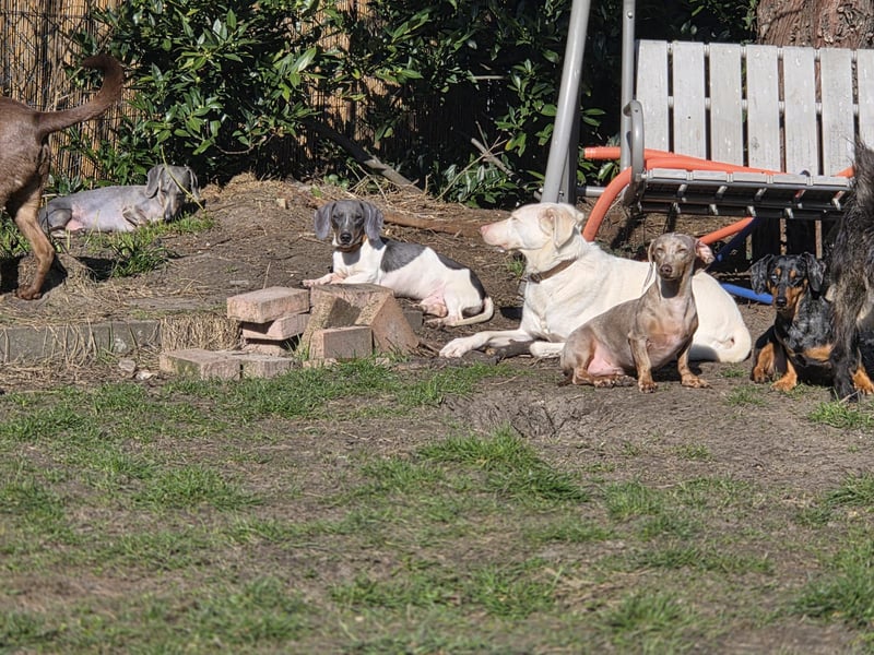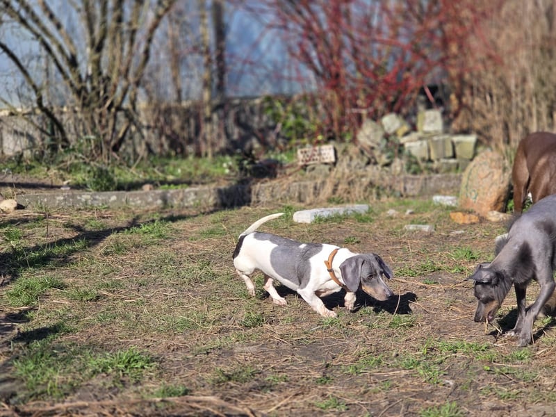 Wir suchen die absolut perfekten Dackeleltern! Huub geht nur zu einem bereits vorhandenen Dackel, im passenden Alter. Er ist super aktiv, verspielt, schlau, noch unsicher im Umgang mit dem Menschen und eigensinnig. Bitte vorher darüber nachdenken, dass seine Farbe nicht gesund ist, egal wie cool es aussieht, es kann gesundheitliche Folgen nach sich ziehen. Halb nackt ist Huub bereits und das wird sehr wahrscheinlich auch so bleiben. Einen Schilddrüsentest haben wir vorsichtshalber gemacht, dieser ist aber in Ordnung.