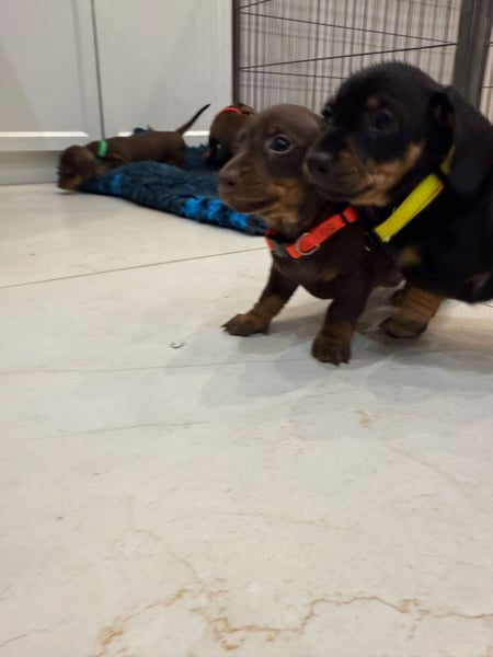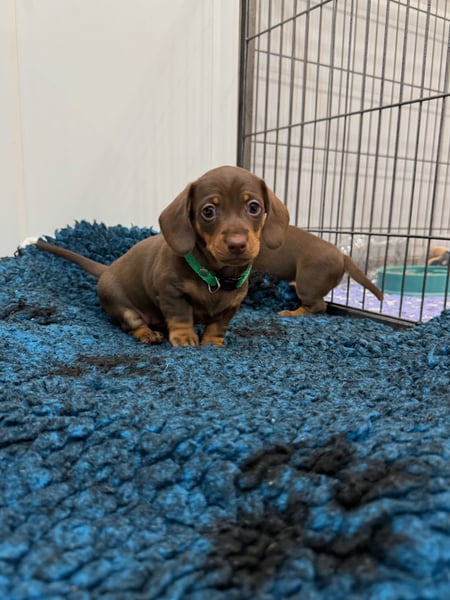 Zwei bezaubernde kleine Dackelwelpen, ein brauner (schokoladenfarbener) Rüde und eine schwarze Hündin mit braunen Flecken, geboren am 24. September 2025 in Lettland, suchen ein liebevolles Zuhause. Die Mutter ist schwarz mit braunen Flecken, der Vater braun (schokoladenfarben). Beide stammen aus einer sehr guten Zuchtlinie. Sie haben einen ausgeprägten Jagdinstinkt und eignen sich hervorragend als treue Familienhunde und Wachhunde. Die Mutter ist Champion von Lettland, Estland, dem Baltikum und vielen europäischen Ländern, der Vater ebenfalls Champion von Lettland, Estland und Lettland. Die Elterntiere wurden augen- und gelenksmedizinisch untersucht. Die Welpen besitzen alle erforderlichen Pässe, sind geimpft und gechipt. Sie haben die Clubuntersuchung bestanden und sind tierärztlich untersucht. Züchter mit 14 Jahren Erfahrung.