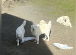 Cleo lebt bei uns mit Vater , Mutter , Tante und Halbschwester sowie einen jungen Kuvasz Rüden und zwei Terrier zusammen.