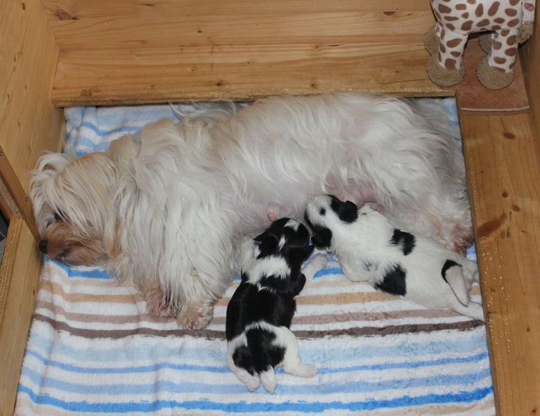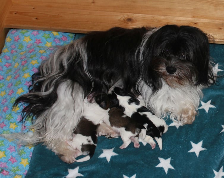 Unsere Kyi-Leo Hündinnen Da-Cha und Jolie haben am 14.09. zwei hübsche Rüden bzw. am 20.09. drei typvolle Rüden geboren. Die Farben sind 3 x schwarz-weiss bzw. 2x gold-weiss.