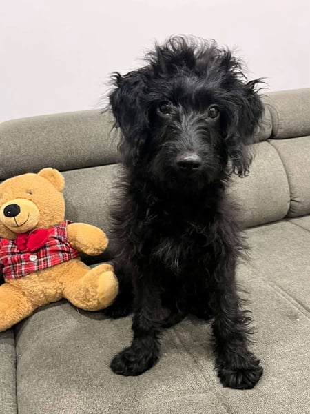Teo ist ein ca. 5–6 Monate junger Labradoodle (Medium) in wunderschönem Schwarz-(geb.am 9.10.2025 ) – ein fröhlicher, neugieriger Welpe mitten im Entdecken der Welt. Der junge Rüde kam als Tierschutzhund aufgrund von Zeitmangel zu den Tierschützern und lebt aktuell in einer liebevollen Pflegefamilie mit Kindern und einem weiteren Hund. Dort zeigt er sich von seiner besten Seite: sozial, freundlich und typisch welpisch verspielt. Mit anderen Hunden ist Teo sehr gut verträglich und genießt den Kontakt zu Artgenossen. Er lernt gerade fleißig das Hunde-1x1 und freut sich darauf, gemeinsam mit seinen zukünftigen Menschen weiter zu wachsen und die Welt zu erkunden. Teo ist mehrfach geimpft, entwurmt und gechipt – bereit für sein neues Abenteuer! Für Teo wünschen wir uns ein aktives Zuhause mit Zeit, Geduld und ganz viel Liebe. Wer schenkt diesem süßen Jungspund sein Für-immer-Zuhause?
