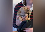 Mrs Orange ist eine Hündin. Sie ist sehr farbenfroh und hat einen kleinen weißen Fleck auf dem Kopf, auf der Brust und hat eine weiße Hinterpfote