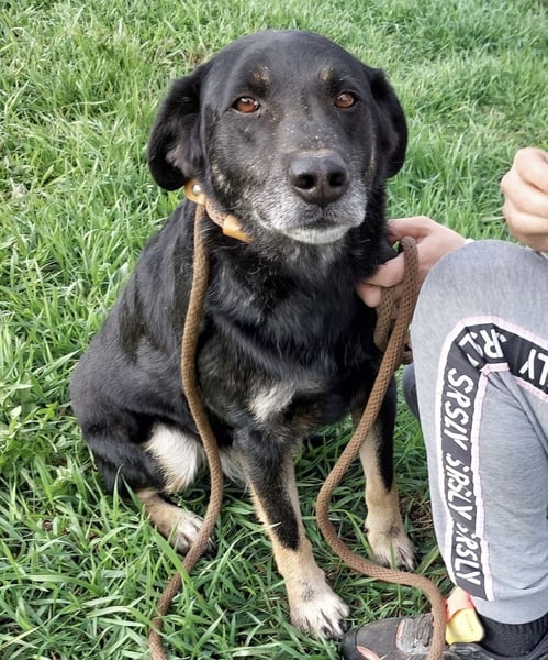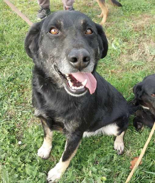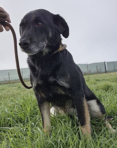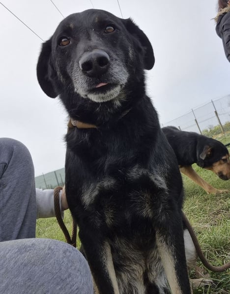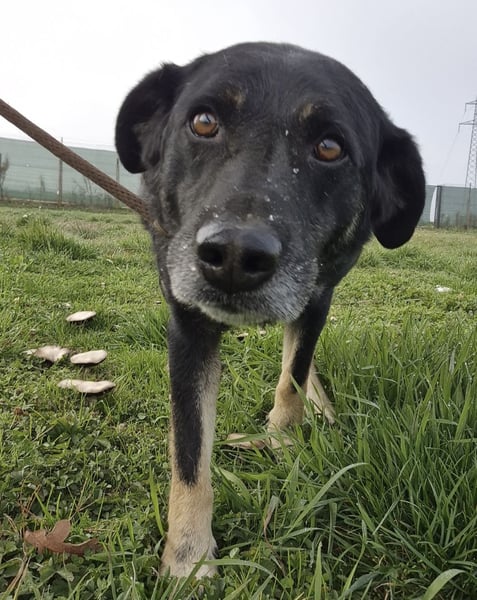 Sein Gesicht zeigt bereits die ersten grauen Haare, die nicht vom Alter, sondern vom schweren Leben im Tierheim kommen. Wenn man aber in seine Augen schaut, merkt man: Er hat die Hoffnung noch nicht aufgegeben.