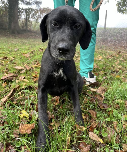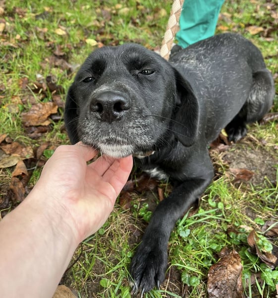 Tima ist ein Mädchen, laut Tierarztschätzung ca. 2 Jahre alt (geb. 15.09.2023). Sie wiegt etwa 22 kg und ist 57 cm groß. Vermutet wird, dass sie ein Labrador-Mix ist.