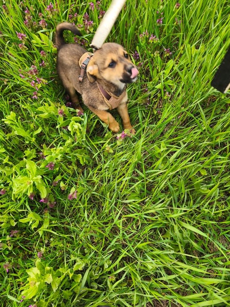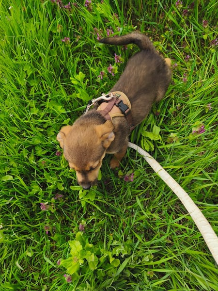 Er ist ein typischer junger Hund: verspielt, interessiert und voller Energie.
