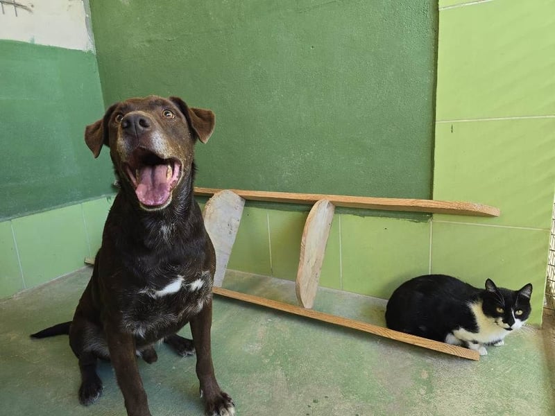 Pedro ist sehr lieb mit Katzen. Mit einigen Hunden versteht er sich nicht, ist aber geduldig.