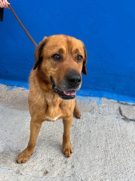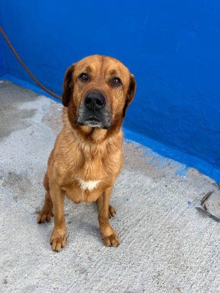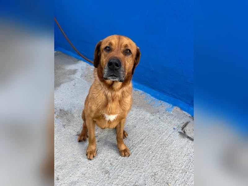 Tommy ist ein beeindruckender, hellbrauner Mastiff-Mischlingsrüde, der allein durch seine Größe und Ausstrahlung sofort ins Auge fällt. Mit seinen ca. 70 cm Schulterhöhe ist er groß, stattlich und dabei einfach wunderschön. Geboren wurde ca. November 2020 – also im besten Alter, um endlich anzukommen und das Leben als Familienhund kennenzulernen.