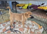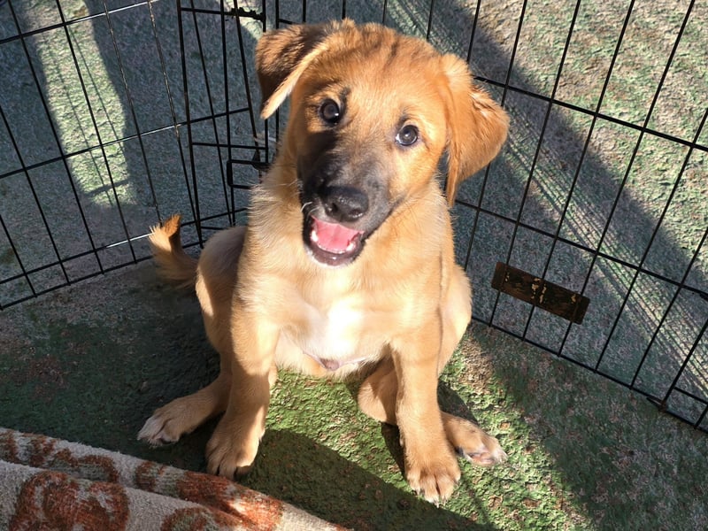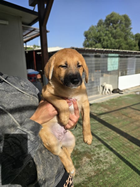 Egidio ist hellbraun mit einer dunklen Schnauze. In ihm stecken, genau wie bei seiner Schwester, auf alle Fälle Labradorgene. Er ist jetzt schon etwas größer als seine Schwester. Wir schätzen seine Endgröße auf ca. 55 cm.