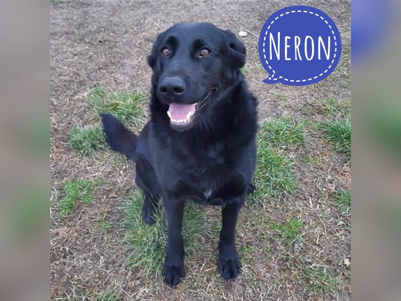 Neron ist ein Bub, er ist ca. 5,5 Jahre alt, wiegt ca. 50kg und ist ca. 64cm groß. Er ist viel zu dick. Vermutet wird ein Labrador (Mix).