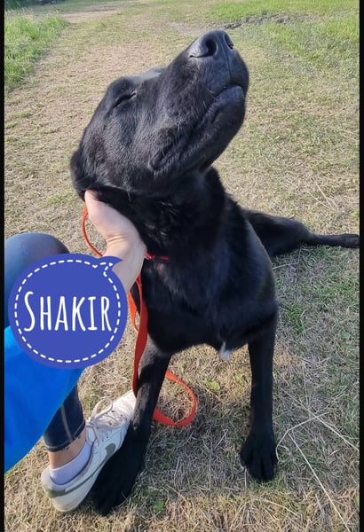 Shakir ist ein Bub, er ist ca. 2 Jahre alt (geb. 20.03.2023), wiegt 35kg und ist 67cm groß. Vermutet wird ein größerer Labrador-Mix.