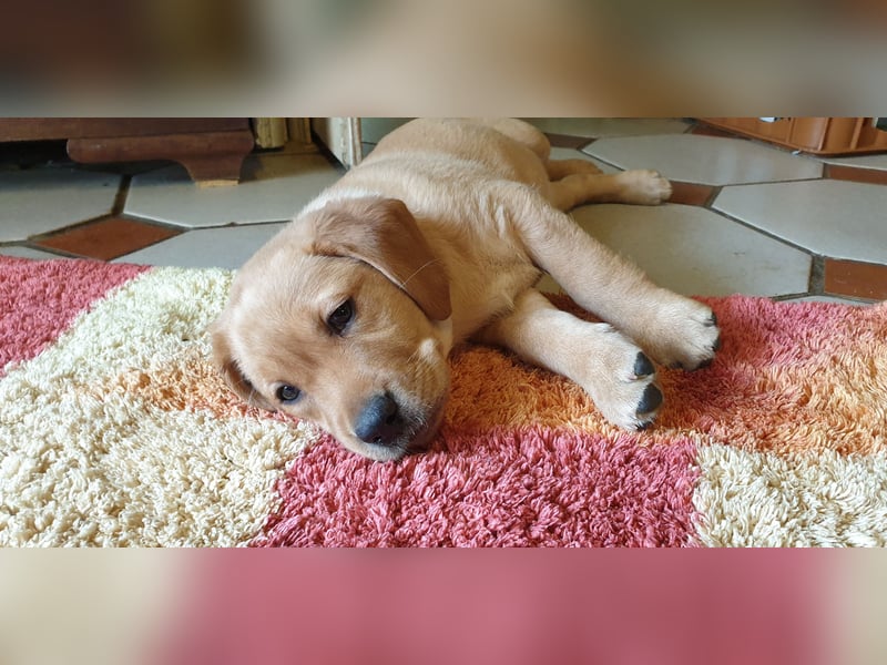 Beim Labrador Retriever handelt es sich um eine britische, von der FCI (Fédération Cynologique Internationale) anerkannte Hunderasse, die in Deutschland vor allem als Familienhund sehr beliebt ist. Der Labrador präsentiert sich als mittelgroßer und kräftig gebauter Hund. Der in den Fellfarben Braun, Gelb und Schwarz gezüchtete Vierbeiner erreicht laut Rassestandard eine Größe von 54 bis 57 Zentimetern und ist sehr aktiv und arbeitsfreudig. Aufgrund seines freundlichen und ausgeglichenen Wesens ist der ausgesprochen kinderliebe Labrador sehr beliebt bei Familien mit Kindern. Durch seine hohe Belastbarkeit und Freundlichkeit, seine gute Spürnase und Leichtführigkeit kommen aber auch andere Aufgaben für den Labrador infrage. So bewährt er sich seit vielen Jahren ebenso als Spürhund für den Zoll- und Polizeidienst wie als Rettungshund oder Blindenführerhund. Nicht zuletzt eignet sich die ausgesprochen freundliche Hunderasse hervorragend für Therapiezwecke, insbesondere für den Umgang mit Kindern. Ähnliche Rassen zum Labrador sind Golden Retriever, ein Irish Setter oder ein Flat Coated Retriever. Das Verhalten des Labradors ist stets durch Ausgeglichenheit, Intelligenz, positiven Eifer und einen starken Bezug zum Menschen gekennzeichnet. Wer einen Labrador Welpen kauft, darf sich auf einen hingebungsvollen und treuen Hund freuen, der schnell zum lieb gewonnenen Familienmitglied wird. Vor dem Kauf sollte bedacht werden, dass der Labrador zu den Retrieverrassen gehört, bei denen zwei Zuchtziele vorrangig sind. Entscheiden können sich Käufer für einen Hund der sportlichen Arbeitslinie, auch "Field-Trial-Linie" genannt, oder der klassischen Showlinie.