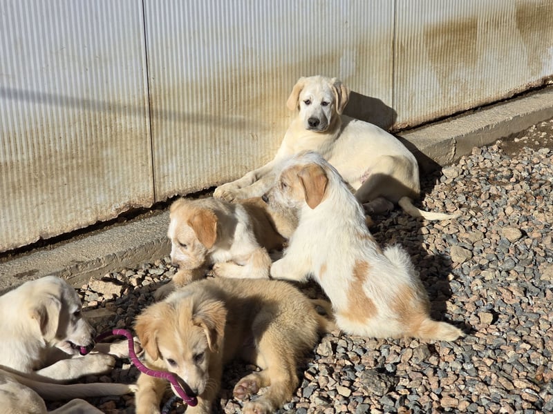 9 Hundebabies- nur durch Zufall von einer Spaziergängerin am Flughafen entdeckt. Sie hat nicht weggesehen, sondern die Lida, unser Kooperationstierheim informiert. Der Standort der Lida nahe Flughafen und so konnte der Tierheimleiter schnell kommen und die Kleinen in Sicherheit bringen. Sie wurden medizinisch gecheckt und mussten in Quarantäne. Nun sind sie bereit für ein schönes Leben in einer Familie