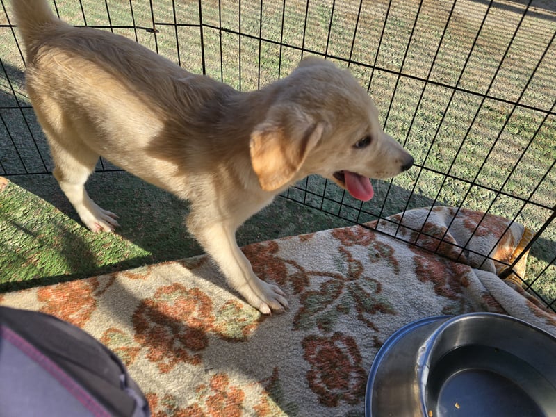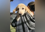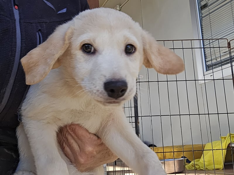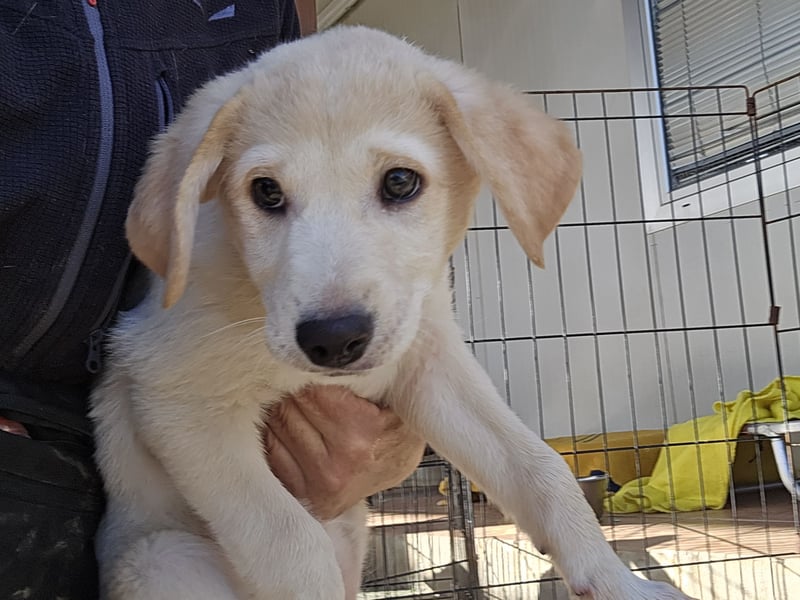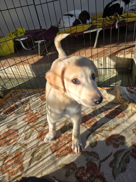 Emanuela hat ein beiges Fell und dunkle Kulleraugen.. In ihr stecken, genau wie bei Ihrem Bruder, auf alle Fälle Labradorgene. Sie ist kleiner und zierlicher als Egidio.