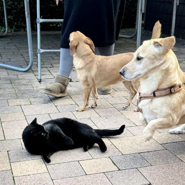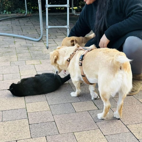 Benni mag alle Menschen, sowie Kinder kennt er und mag er sehr. Mit allen Artgenossen und auch Katzen ist er wunderbar verträglich und geht Konflikten immer aus dem Weg.